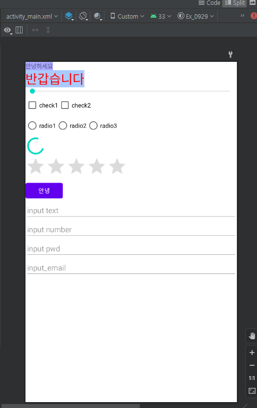 android:text="안녕하세요"