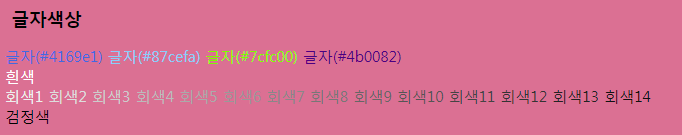 <span style="color:#4b0082;">글자(#4b0082)</span><br>