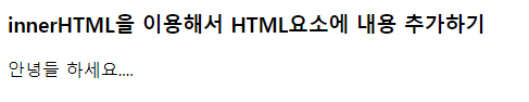 <h3>innerHTML을 이용해서 HTML요소에 내용 추가하기</h3>